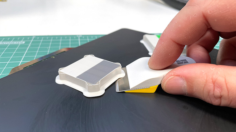You see, I don’t always remove the build plate after a print. Often I just remove the model, clean off the skirt, brim, and any calibration prints, wipe it down with alcohol — and start the next job. That’s exactly where a shorter scraper really comes in handy. And that’s the tool I ended up creating today. Honestly, it’s a very handy little thing. Highly recommended.