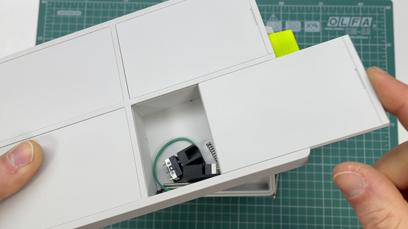 Not long ago, I redesigned the upper tray to turn it into a fully closable section. In the first version, it was more of a tray for quick part picking, but in practice this solution wasn’t very convenient: the lid didn’t secure well and regularly caused small but annoying issues.